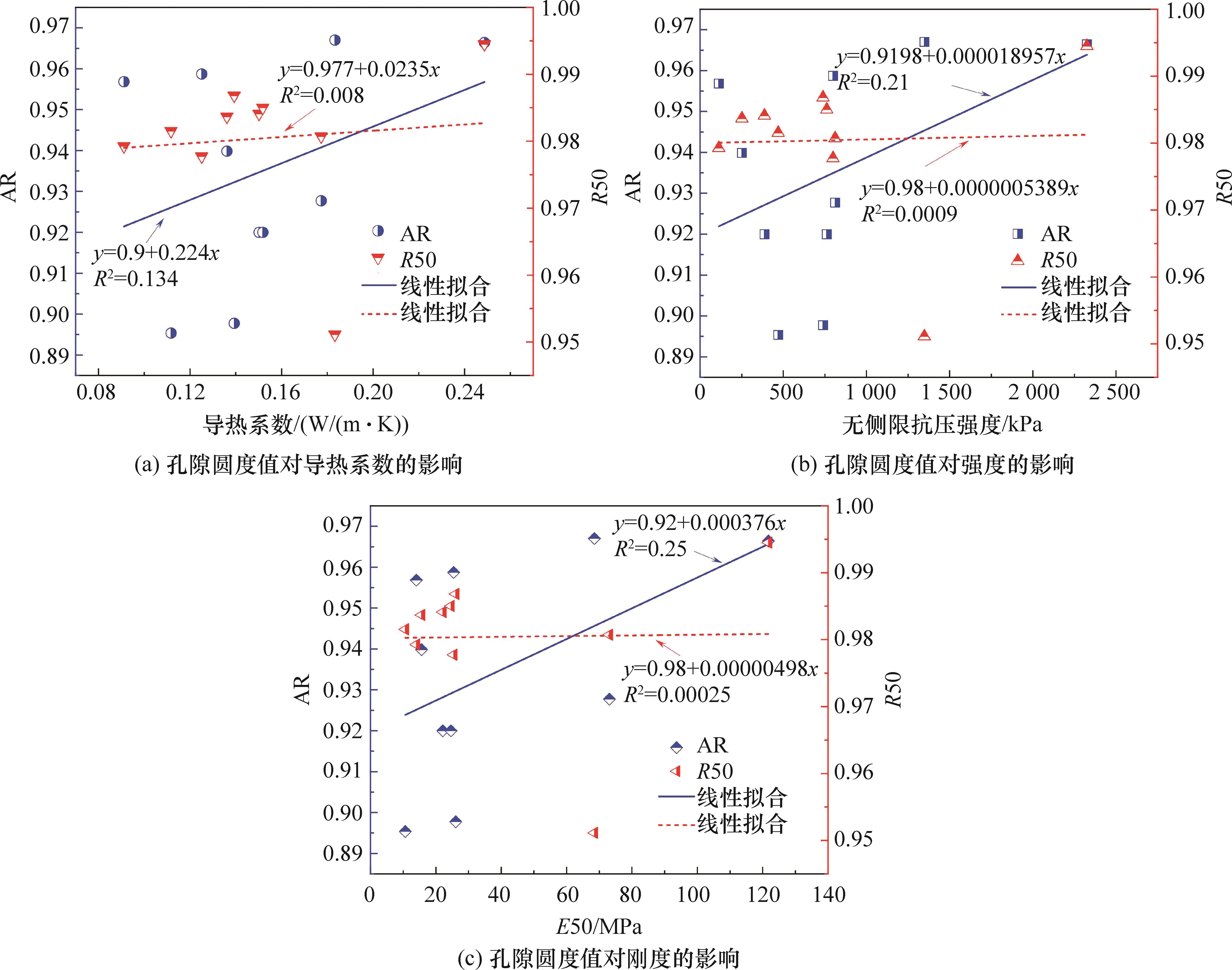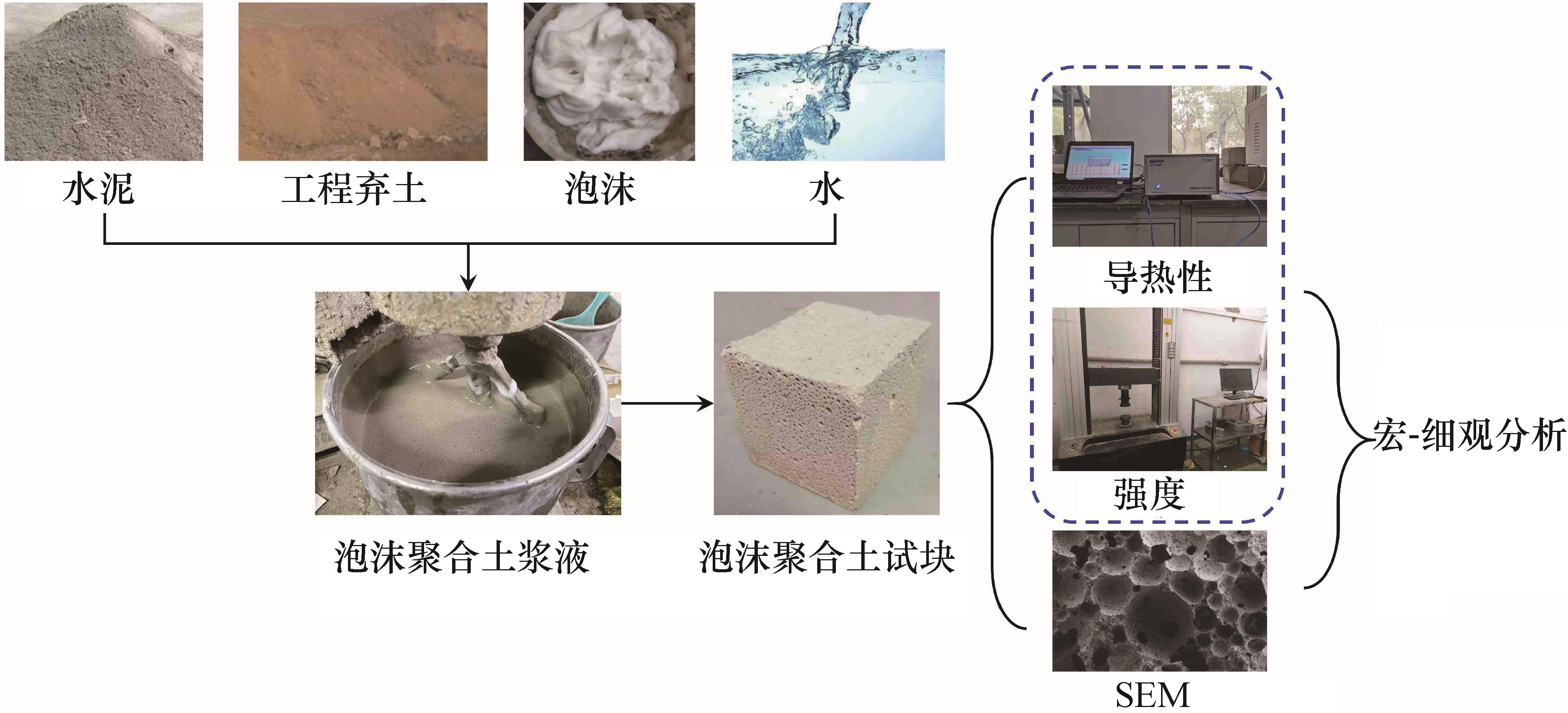 The use of excavated soil from highway construction sites to produce foamed polymeric soil, employed as a thermal insulation layer for seasonally frozen subgrades, not only achieves comprehensive resource utilization but also mitigates frost damage to the subgrades. Based on the excavated soil along the Urumqi Ring Expressway, combined with cement and foam, the foamed polymeric soil with porous insulation properties was developed. The influences of wet density, soil admixture, and water-cement ratio on the thermal conductivity, unconfined compressive strength, and stiffness of foamed polymeric soil were systematically investigated, establishing an intrinsic connection between pore structure and macroscopic performance. The research findings indicate that when the density of foamed polymeric soil increases from 600 kg/m³ to 1 200 kg/m³, its thermal conductivity approximately doubles, strength increases by about 3.95 times, and modulus increases by approximately 10.5 times. Compared to traditional subgrade soil, the thermal conductivity of foamed polymeric soil is significantly reduced by 52%-96.4%. Further analysis of the pore structure reveals that as the pore size of foamed polymeric soil within a unit volume decreases, the proportion of the skeleton increases correspondingly, while the volume of air pores decreases. This microstructural change manifests as improved thermal insulation performance (i.e., reduced thermal conductivity) and significant enhancement in mechanical properties (including strength and stiffness) at the macroscopic level. Foamed polymeric soil not only demonstrates better thermal insulation performance but also exhibits strong mechanical characteristics, providing a suitable solution for the thermal insulation layer of seasonally frozen subgrades.